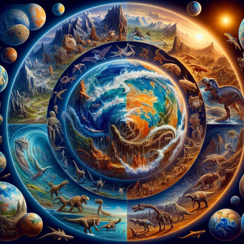 A história da Terra divide-se em quatro grandes Éons: Hadaico, Arcaico, Proterozóico e Fanerozóico. Um Éon é a maior unidade de tempo geológico, abrangendo milhares de milhões a centenas de milhões de anos, e representa fases distintas da evolução do planeta. Cada Éon, por sua vez, subdivide-se em Eras, períodos menores que marcam eventos geológicos e biológicos significativos, como o surgimento da vida, a formação dos continentes e a diversificação dos seres vivos.