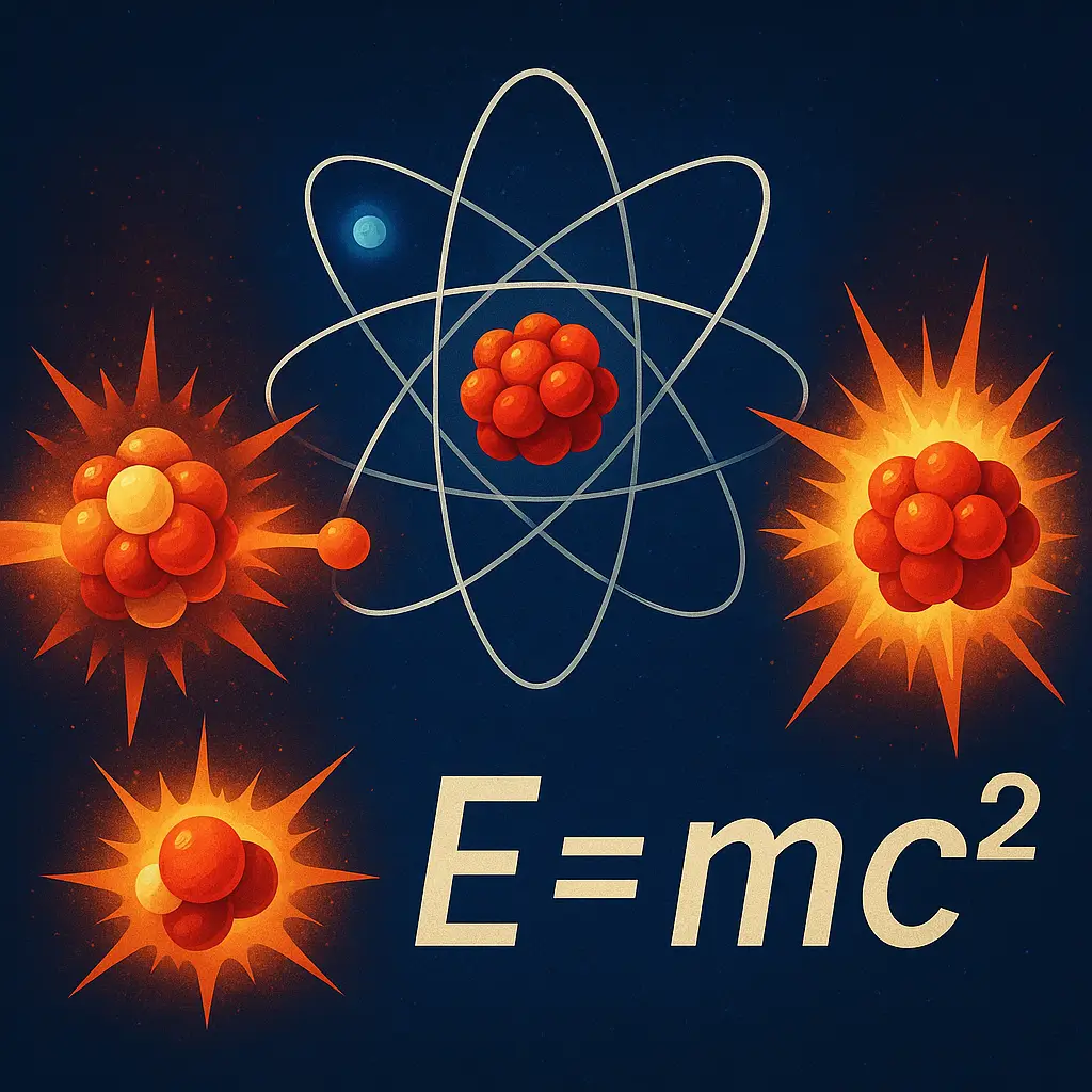 A equação E=mc2, proposta por Albert Einstein, descreve como a massa pode ser convertida em energia. Na física nuclear, isso se aplica às reações nucleares, onde uma pequena quantidade de massa dos núcleos atômicos é convertida em uma grande quantidade de energia. Isso é particularmente evidente na fissão nuclear, onde a diferença de massa entre os núcleos originais e os produtos finais é liberada como energia